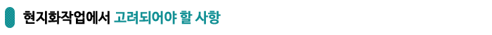 이러한 작업은 웹 사이트의 고유한 특성 및 디자인은 유지 시키면서 해당언어의 문화권에서 발생할 수 있는 특수한 언어적 환경 혹은 컨텐츠의 기피나 선호도 등이 반영되어야 합니다.