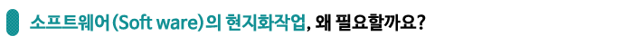 소프트웨어 현지화 작업은 언어와 네트워크 등의 구동환경이 대상국가와 제작된 국가 간에 상호 다르기 때문에 프로그램 출시 후 제대로 작동하지 않는 일이 빈번하게 발생합니다.